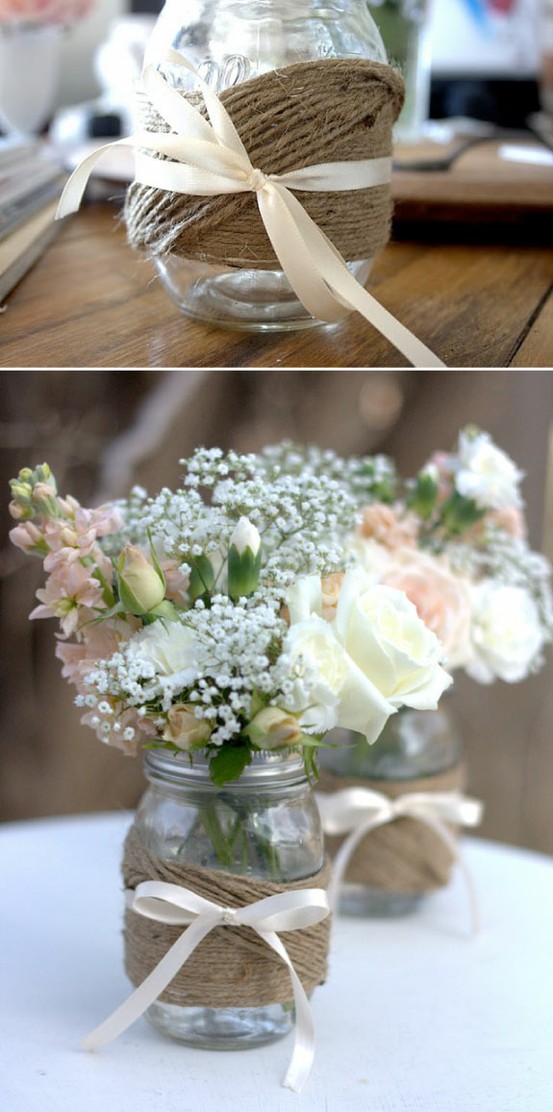 Twine covered mason jar center piece